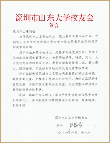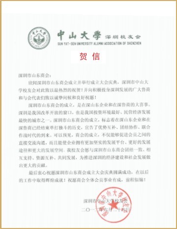 深圳市山東大學(xué)校友會賀信 中山大學(xué)深圳校友會賀信