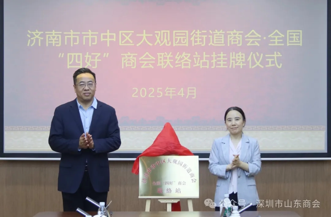 座談會后,舉行了濟(jì)南市市中區(qū)大觀園街道商會全國“四好”商會聯(lián)絡(luò)站掛牌儀式,為雙方未來的合作奠定了堅(jiān)實(shí)的基礎(chǔ)。