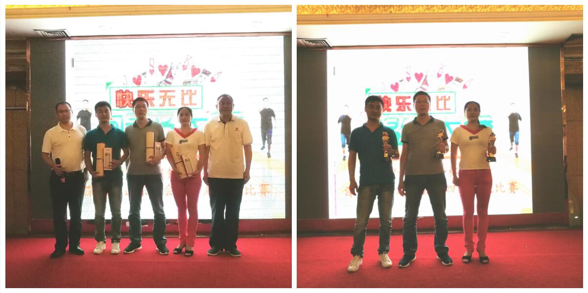 商會副會長朱禮貴,副秘書長、裁判扈炳燕為亞軍隊頒發(fā)獎杯及獎品