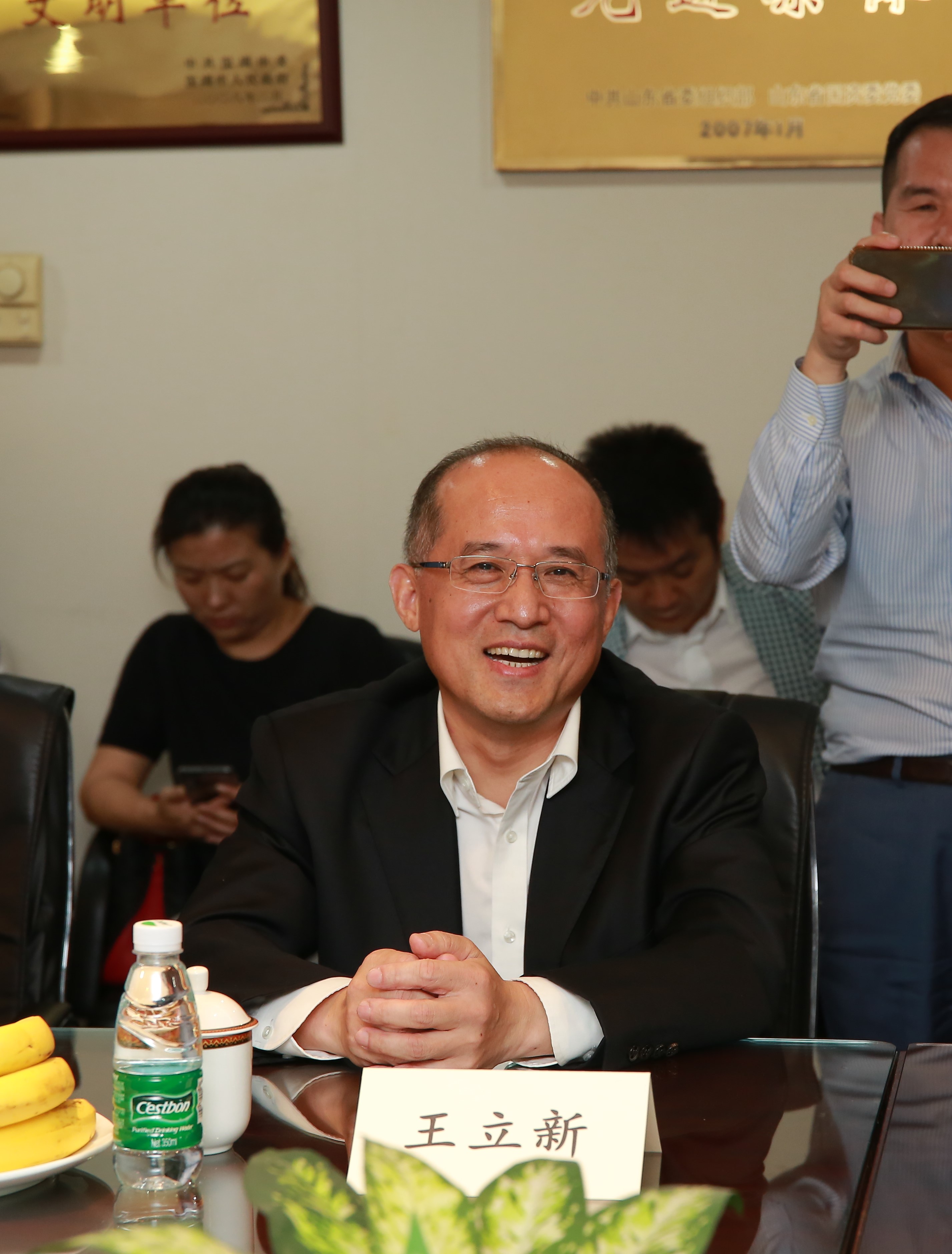 王立新會(huì)長(zhǎng)首先對(duì)莫言先生一行的蒞臨表示熱烈歡迎,并向來賓介紹了商會(huì)各位副會(huì)長(zhǎng)和商會(huì)的有關(guān)情況。