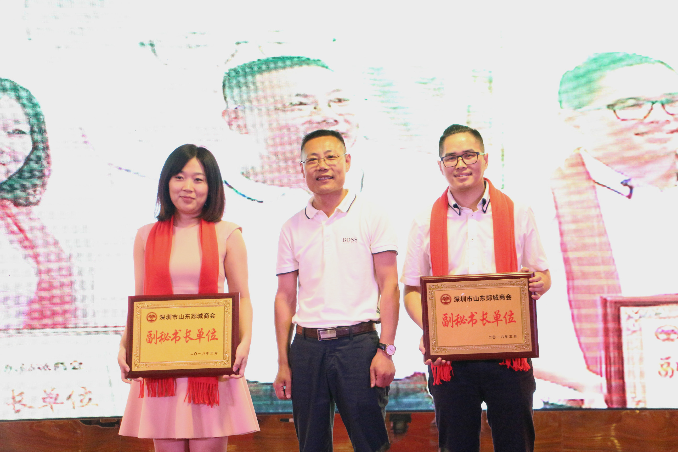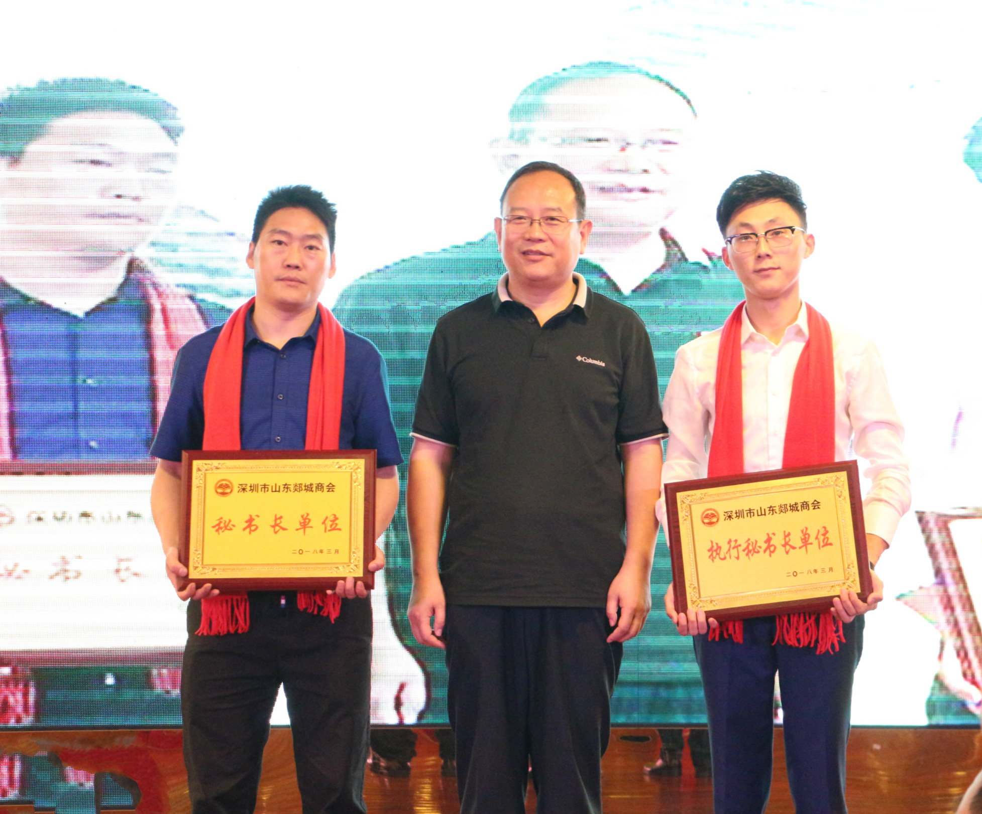 臨沂市政府駐廣東聯(lián)絡處主任張肖為深圳市山東郯城商會執(zhí)行秘書長單位、秘書長單位授牌