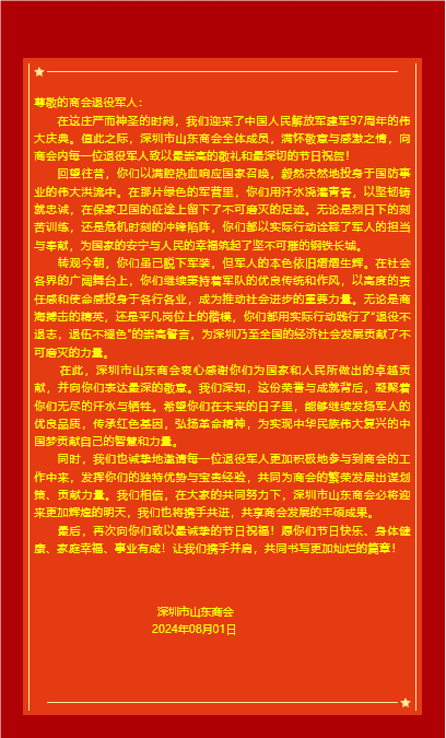 【節(jié)日慰問】深圳市山東商會(huì)“八一”慰問信