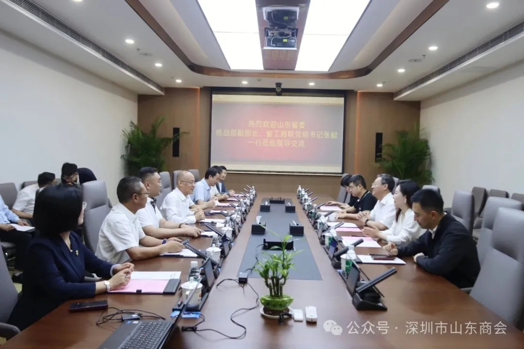 2025年6月19日,山東省委統(tǒng)戰(zhàn)部副部長、省工商聯(lián)黨組書記張鯤,山東省總商會副會長、省青年企業(yè)家聯(lián)合會副會長、山東堯王控股集團總裁宗劍飛,山東省青年企業(yè)家聯(lián)合會副會長兼秘書長、山東東明石化集團總裁李治,山東省青年企業(yè)家聯(lián)合會副會長、山東恒信集團總經(jīng)理司傳煜,山東省工商聯(lián)組織建設(shè)處副處長趙喆等一行蒞臨我會開展調(diào)研與交流活動,圍繞服務(wù)民營經(jīng)濟高質(zhì)量發(fā)展、深化政企溝通機制、推動“雙招雙引”等議題展開深入探討。我會會長王立新,執(zhí)行會長孫永亮,執(zhí)行會長兼秘書長梁慶偉,深圳市東華實業(yè)(集團)有限公司黨委委員、副總經(jīng)理楊吉平,我會副會長朱禮貴、吳軍、陳靜,理事李建海、杜江濤,執(zhí)行秘書長兼辦公室主任陳振永,黨委辦公室主任、副秘書長張含增及秘書處人員等熱情接待,并做交流匯報。
