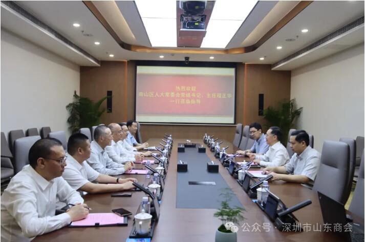 2024年4月18日上午,南山區(qū)人大常委會黨組書記、主任程正華蒞臨山東商會、東華集團調研指導,南山區(qū)人大常委會辦公室主任陳忠陪同調研。我會會長王立新,執(zhí)行會長高征、王傳啟,東華集團黨委副書記、總經理劉立基,東華集團黨委委員、副總經理楊吉平,我會執(zhí)行秘書長兼辦公室主任陳振永等熱情接待并座談交流。