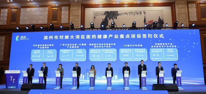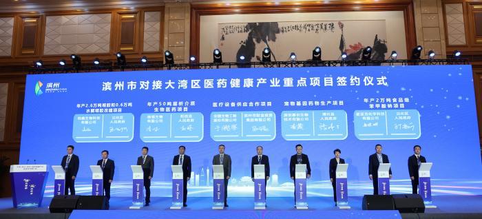 推介會舉行了濱州市對接大灣區(qū)醫(yī)藥健康產(chǎn)業(yè)重點項目簽約儀式,共簽約19個項目,總簽約額125.4億元。其中,實體類項目14個,簽約額114.4億元;基金類項目2個,簽約額11億元;科研、人才類項目3個。