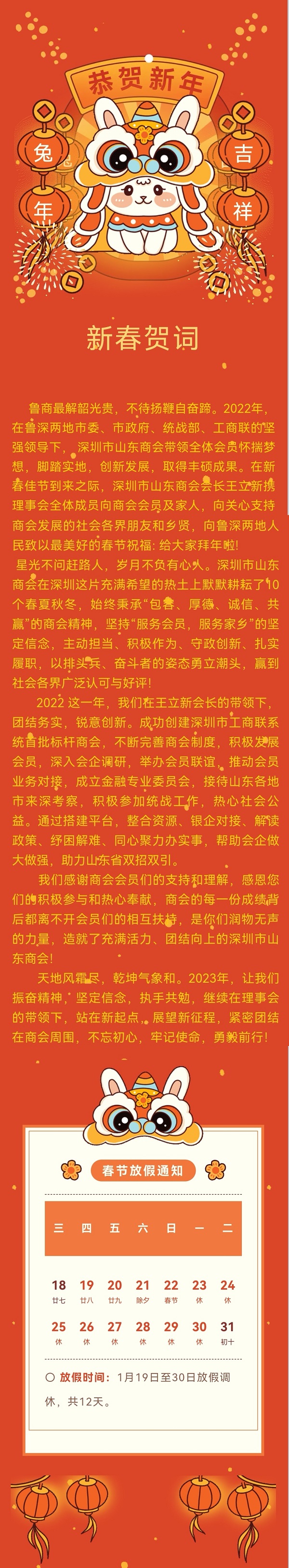 【放假通知】深圳市山東商會(huì)恭祝大家新春快樂(lè)!萬(wàn)事勝意!