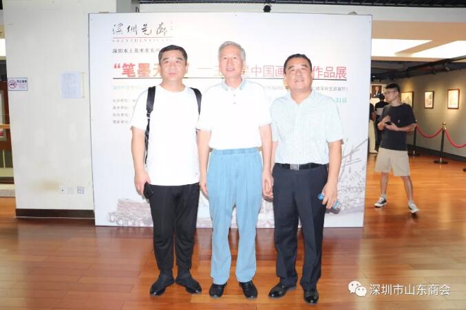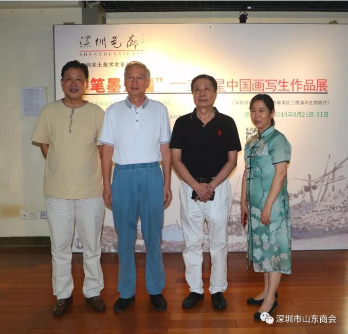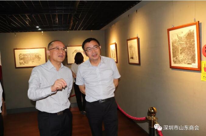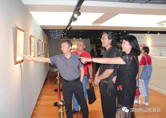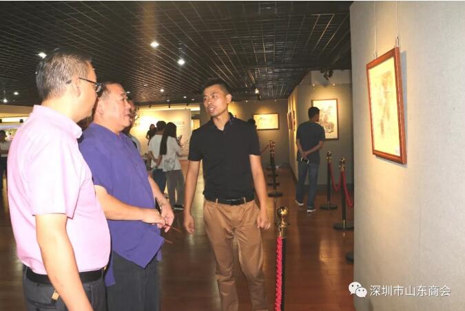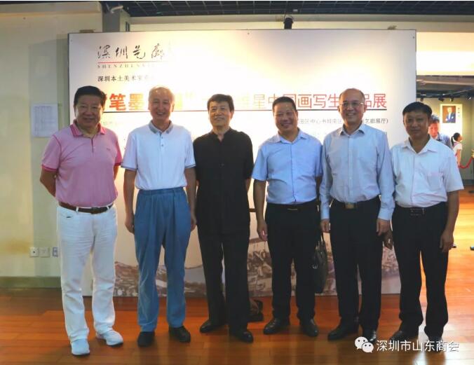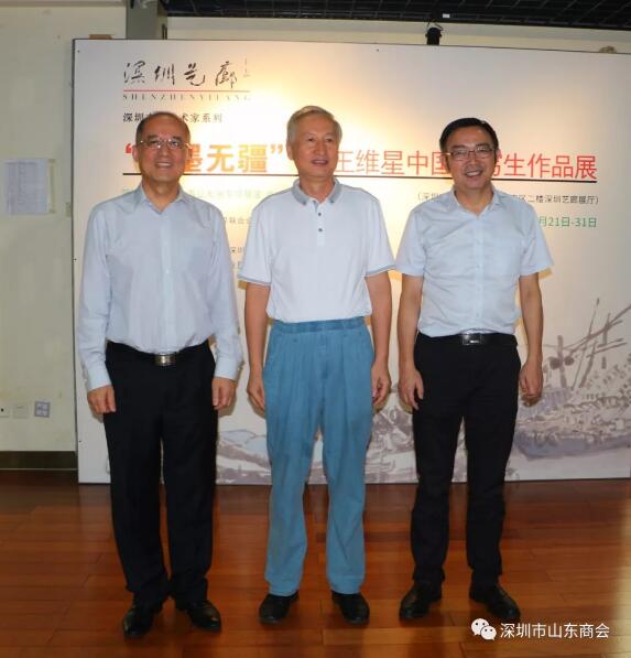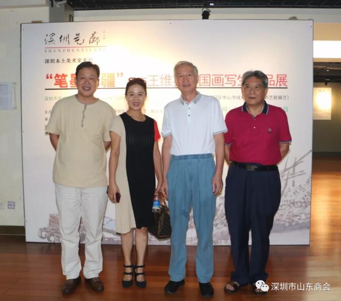 2019年8月21日下午16:30“筆墨無疆”—王維星中國畫寫生作品展在深圳中心書城南區(qū)二樓“深圳藝廊”開幕。此次展覽由深圳市文學藝術(shù)界聯(lián)合會和深圳出版發(fā)行集團主辦、深圳市美術(shù)家協(xié)會承辦、深圳市山東商會、深圳市齊魯書畫院協(xié)辦,并得到深圳市魯粵豐農(nóng)業(yè)發(fā)展有限責任公司、深圳市騰飛達文化發(fā)展有限公司的大力支持。展覽現(xiàn)場群賢畢至,少長咸集。我會會長王立新,常務副會長畢永濤、張煥祥、郭林槐、梁慶偉、臧延懷,監(jiān)事長王澤云,副會長張慶剛、郭紅菊、張永軍,執(zhí)行秘書長陳振永等商會領(lǐng)導及南山美術(shù)家協(xié)會名譽主席王潮安,深圳市企業(yè)家書畫學會會長翟先立,鵬寶軒藝術(shù)館館長林俊玉,深圳市瀚墨重彩畫研究院院長趙巨耀,古營軒畫廊莊汝東以及齊魯書畫院馮占奎、劉春昌、段八一、許少杰、馬君等到場祝賀我會創(chuàng)會會長、深圳市齊魯書畫院院長王維星畫展開幕。