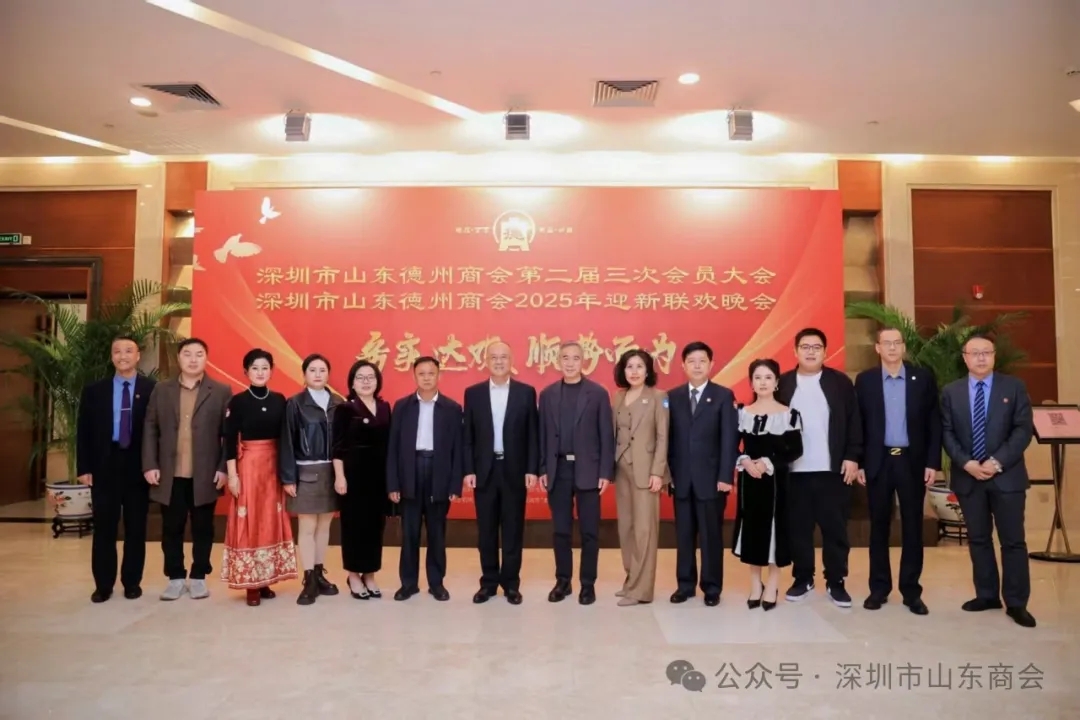 2025年1月15日,深圳市山東德州商會第二屆三次會員大會暨2025新年晚會在深圳五洲賓館華夏廳盛大召開。此次大會匯聚了眾多鄉(xiāng)賢、領(lǐng)導(dǎo)與會員,共同回顧過去一年的工作、表彰先進、展望未來,為商會發(fā)展注入強大動力。 深圳市山東商會名譽顧問、深圳市山東德州榮譽會長孫景明,深圳市山東商會會長、深圳市山東德州商會榮譽會長王立新,深圳市山東商會執(zhí)行會長臧延懷,深圳市山東商會執(zhí)行會長、深圳市山東德州商會會長任吉忠,深圳市山東商會副會長王森霖,深圳市行業(yè)領(lǐng)袖企業(yè)發(fā)展促進會執(zhí)行會長張海燕,深圳市山東德州商會執(zhí)行會長王德強,深圳市山東商會執(zhí)行秘書長兼辦公室主任陳振永等,以及深圳市山東德州商會副會長、理事、會員,共計120人出席大會。
