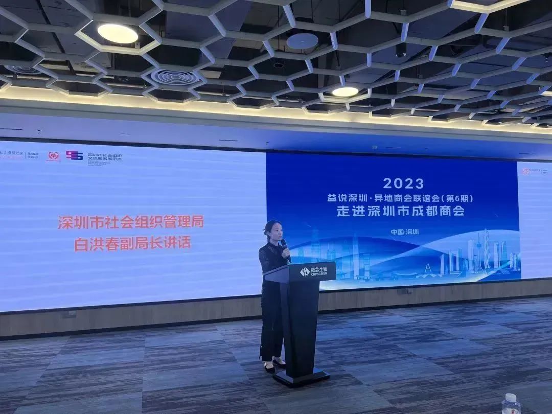 2023年10月16日,由深圳市社會組織總會策劃的系列主題活動“益說深圳·異地商會聯(lián)誼會”(第6期)在深圳市成都商會會長單位“深圳微芯生物科技股份有限公司(股票代碼:688321)成功舉行。深圳市社會組織管理局副局長白洪春,市社會組織管理局登記管理處副處長鄭培偉 ,深圳市社會組織總會執(zhí)行會長蘇建東等出席會議,本次聯(lián)誼會邀請了30余家異地商會會長、秘書長參加。我會執(zhí)行會長兼秘書長梁慶偉代表商會參加了此次聯(lián)誼會。
