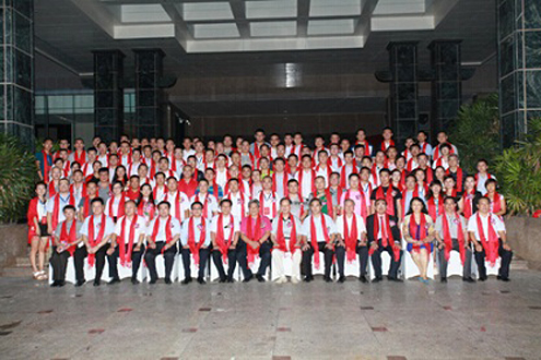商會榮譽(yù)顧問郭榮俊、會長王維星、副會長梁慶偉等與出席成立大會的人員集體合影