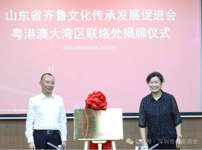隨后,在與會人員的見證下,吳翠云主席、姜國董事長共同為“粵港澳大灣區(qū)聯(lián)絡(luò)處”揭牌,聯(lián)絡(luò)處的正式揭牌,是兩會在文化傳承與發(fā)展領(lǐng)域合作的具體體現(xiàn),也是推動齊魯文化在粵港澳大灣區(qū)傳播與發(fā)展的重要舉措。聯(lián)絡(luò)處將依托山東商會和深圳東華的資源和優(yōu)勢,積極搭建平臺、整合資源,為齊魯文化的傳承與發(fā)展提供有力支持。