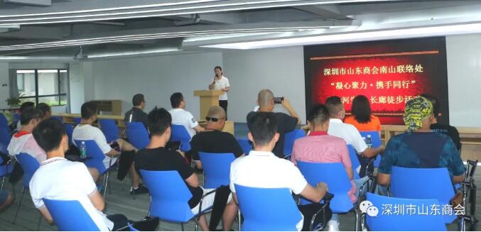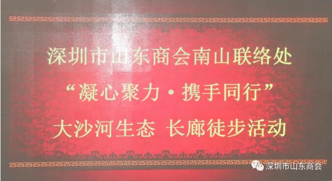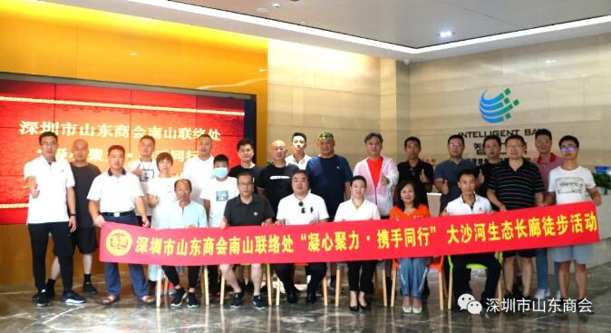 為加強新老會員之間的聯(lián)系,增進商會與會員之間的感情,同時豐富會員文體生活。7月26日下午,深圳市山東商會南山聯(lián)絡(luò)處舉行“凝心聚力·攜手同行”大沙河生態(tài)長廊徒步活動。我會常務(wù)副會長梁慶偉,副會長郭紅菊,執(zhí)行秘書長陳振永等一行30多人參加了此次活動。