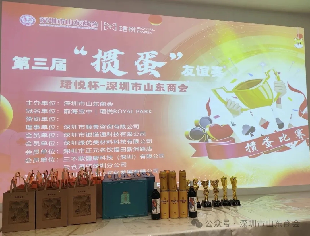 為豐富會(huì)員的文化生活,增進(jìn)會(huì)員間團(tuán)結(jié)協(xié)作與交流合作,營(yíng)造積極向上的生活與工作氛圍,展現(xiàn)會(huì)員企業(yè)家良好的精神風(fēng)貌,2025年07月19日,“珺悅杯”深圳市山東商會(huì)第三屆摜蛋友誼賽在深圳山東大廈成功舉辦。我會(huì)執(zhí)行會(huì)長(zhǎng)兼秘書長(zhǎng)梁慶偉,執(zhí)行會(huì)長(zhǎng)楊利,副會(huì)長(zhǎng)張捷、朱禮貴、王鍇、馬大鵬,執(zhí)行秘書長(zhǎng)兼辦公室主任陳振永以及南山、福田、寶安光明、雙龍、羅湖鹽田大鵬聯(lián)絡(luò)處會(huì)員代表隊(duì)等70余名摜蛋愛好者歡聚一堂、切磋技藝?;顒?dòng)由會(huì)員姜磊主持。