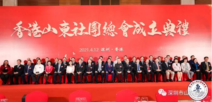2021年4月12日,香港山東社團(tuán)總會(huì)成立大會(huì)在深港兩地同步舉行。因疫情原因,會(huì)議采用線上、線下相結(jié)合的方式舉辦,得到了山東各界及在港山東鄉(xiāng)賢的大力支持。山東省委常委、統(tǒng)戰(zhàn)部長張江汀率領(lǐng)全省16個(gè)地市的統(tǒng)戰(zhàn)部部長出席深圳會(huì)場,香港特別行政區(qū)行政長官林鄭月娥、香港特區(qū)政府政制及內(nèi)地事務(wù)局局長曾國衛(wèi)、香港特區(qū)政府民政事務(wù)局局長徐英偉、中央政府駐港聯(lián)絡(luò)辦副主任何靖為總會(huì)成立題寫賀詞。我會(huì)會(huì)長王立新在主桌就座并上臺(tái)見證了總會(huì)成立儀式。我會(huì)執(zhí)行會(huì)長兼秘書長梁慶偉,執(zhí)行秘書長陳振永陪同參加了此次活動(dòng)。