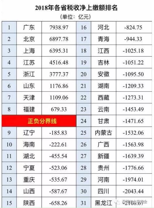 再看看山東上繳的稅收在全國的排名: