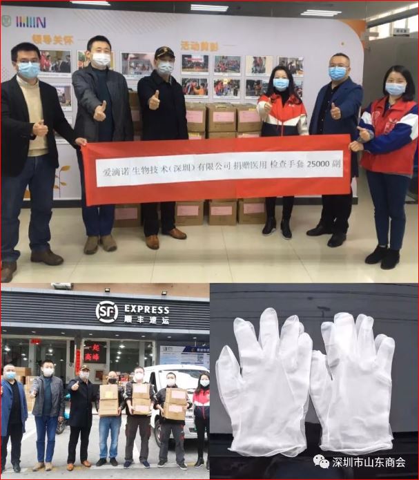2月1日,副會長伍柳江(深圳市家音信息技術(shù)有限公司董事長)捐贈25000副醫(yī)用手套至湖北省山東商會代捐給一線醫(yī)護人員,并分別給深圳市南山區(qū)團委和深圳市救災聯(lián)合會各捐贈25000副醫(yī)用手套;