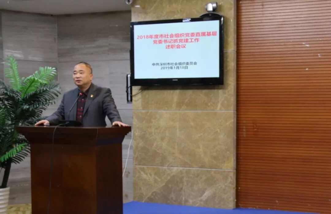 2019年1月18日下午,深圳市社會組織黨委舉行直屬黨委書記抓基層黨建工作述職會。市兩新組織黨工委副書記、市社會組織黨委書記、社會組織管理局局長凌沖同志,市社會組織黨委委員、紀(jì)委委員,市委組織部派駐十八類行業(yè)協(xié)會黨委第一書記,各直屬黨委書記及相關(guān)負(fù)責(zé)人等100多人參加會議。市社會組織黨委副書記、紀(jì)委書記肖衛(wèi)國同志主持會議。深圳市山東商會黨委作為13家現(xiàn)場發(fā)言述職單位參會。