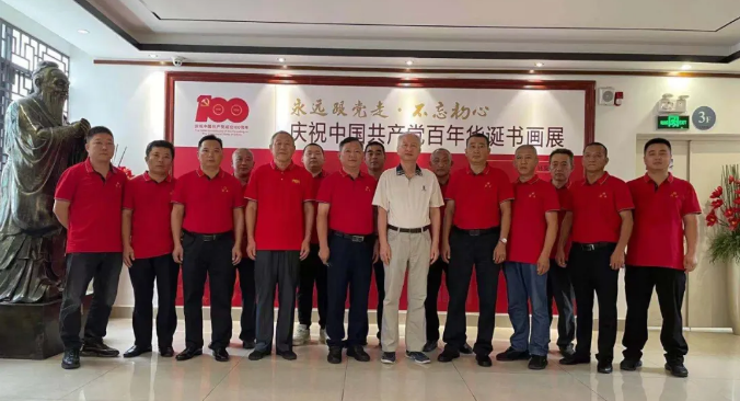 中國共產(chǎn)黨成立100周年前夕,為迎接黨的百年華誕。6月30日上午,由深圳市山東商會黨委、深圳市齊魯書畫院主辦的“永遠(yuǎn)跟黨走·不忘初心”慶祝中國共產(chǎn)黨百年華誕書畫展在東華園5棟三樓成功開展。深圳市山東商會黨委書記、創(chuàng)會會長王維星,商會黨委副書記、會長王立新,商會黨委副書記、執(zhí)行會長張煥祥,商會黨委成員、監(jiān)事長梁尚迎,商會黨委成員、執(zhí)行會長臧延懷,商會黨委成員、顧問畢永濤,商會黨委成員、顧問郭林槐,商會黨委成員、副會長張永軍,商會執(zhí)行會長兼秘書長梁慶偉,商會執(zhí)行會長楊利,商會副會長郭紅菊,商會黨委紀(jì)委書記張書航,商會黨委辦公室主任張含增等參觀了畫展。深圳市山東商會黨委直屬一支部書記、執(zhí)行秘書長陳振永,商會直屬二支部書記徐麗,伯柔服裝支部書記楊少軍,銀儲投資支部書記陳萍,深平一支部書記王維剛,深平二支部書記侯紀(jì)偉,深圳市菏澤商會支部書記孫永彬,深圳市山東濰坊商會支部書記扈炳燕,深圳市山東德州商會支部書記王德強(qiáng)等積極組織黨員同志參觀展出作品。使黨員同志們深切感受到這是一次非常有意義的黨史教育和文化藝術(shù)學(xué)習(xí)實(shí)踐活動。