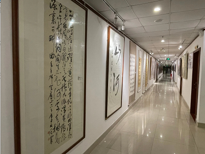 為緊扣建黨百年主題,參展書畫藝術(shù)家們以對黨的深情敬意,以深厚的書畫文化底蘊(yùn),以激情澎湃的創(chuàng)作動力,為觀眾展示了五十多幅書畫精品。深圳市齊魯書畫院院長王維星先生以飽滿墨色的“百年慶典”書法作品,開啟了本次展覽活動的主題,隨之展開的是《李大釗》《方志敏》《魯迅》《錢學(xué)森》等巨幅人物畫像,即刻就把觀眾帶入了百年來無數(shù)先輩為中華民族的復(fù)興崛起而流血犧牲、艱苦卓絕的波瀾壯闊的歷史空間,仿佛他們又回到了我們的中間,與我們共享百年后的今天!而“山河”“毛主席詩詞”書法作品和花團(tuán)錦簇巍峨壯麗的繪畫,熱情謳歌了我們可愛的祖國一派欣欣向榮。觀眾在一幅幅藝術(shù)作品前久久凝視,莊館長的藝術(shù)解說讓大家心領(lǐng)神會。不少黨員觀展后,主動聯(lián)系學(xué)習(xí)交流習(xí)總書記在慶祝中國共產(chǎn)黨成立一百周年慶祝大會上的重要講話精神,并深情地說:一定要永遠(yuǎn)跟黨走!