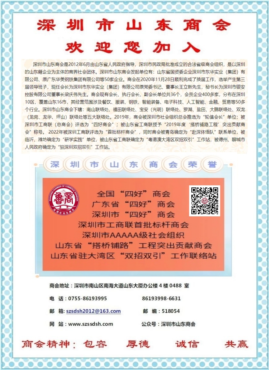 發(fā)布者:深圳市山東商會(huì)宣傳部 發(fā)布時(shí)間:2024/5/20??????點(diǎn)擊率: