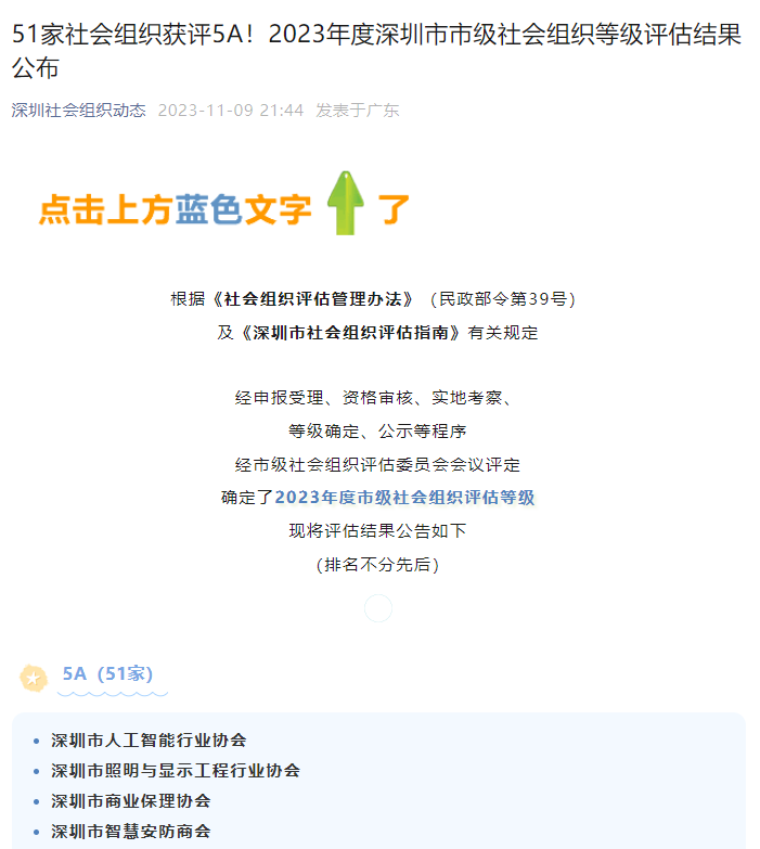 根據(jù)《社會(huì)組織評(píng)估管理辦法》(民政部令第39號(hào))及《深圳市社會(huì)組織評(píng)估指南》有關(guān)規(guī)定,經(jīng)申報(bào)受理、資格審核、實(shí)地考察、等級(jí)確定、公示等程序,經(jīng)市級(jí)社會(huì)組織評(píng)估委員會(huì)會(huì)議評(píng)定,深圳市山東商會(huì)等51家社會(huì)組織獲評(píng)2023年度深圳市“5A級(jí)社會(huì)組織”。
