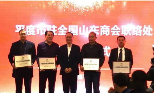 平度市委書記張杰為全國(guó)山東商會(huì)聯(lián)絡(luò)處頒發(fā)牌匾