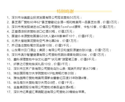 2019年12月27日,“華美杯”企業(yè)家高爾夫聯(lián)誼賽暨2019深圳市山東商會(huì)齊魯高爾夫球隊(duì)年度賽,在東莞觀瀾湖球會(huì)隆重舉辦,近100位在深企業(yè)家參賽。感謝冠名贊助商深圳市華美盛業(yè)投資發(fā)展有限公司及各位贊助商的鼎力支持。