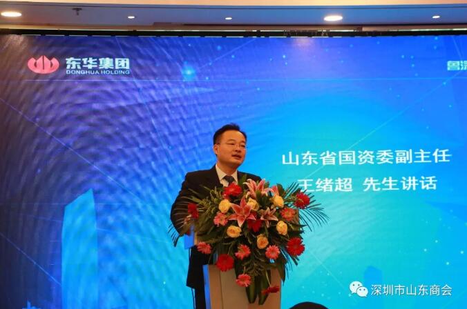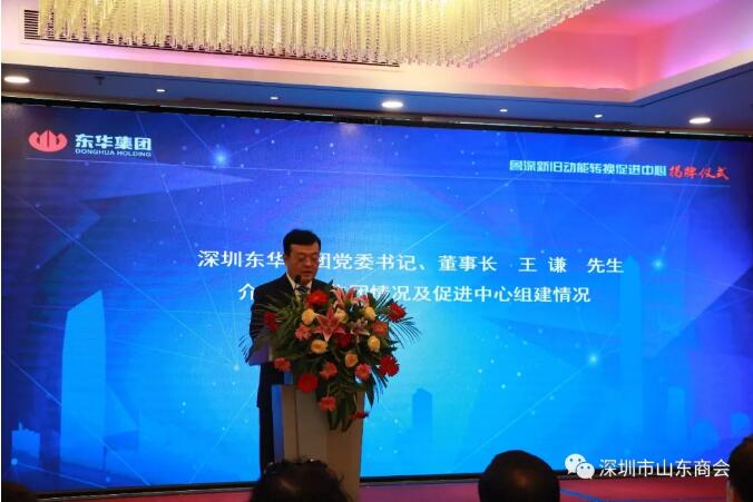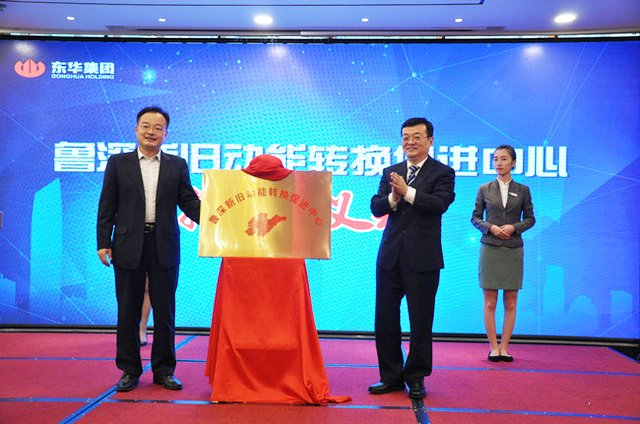 山東省國有資產(chǎn)管理委員會二級巡視員王緒超,深圳市東華實業(yè)(集團)有限公司黨委書記、董事長王謙共同為“魯深新舊動能轉(zhuǎn)換促進中心”揭牌并講話。
