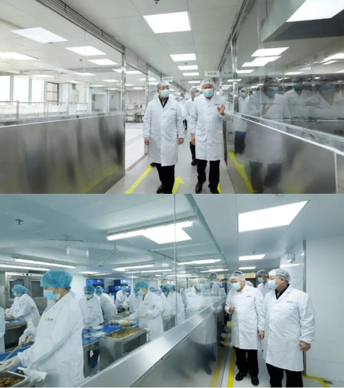 隨后駱文智主任一行參觀了集團(tuán)的中央廚房,實(shí)地考察應(yīng)急配送保障場(chǎng)地。對(duì)于集團(tuán)運(yùn)用自動(dòng)化設(shè)備提高了生產(chǎn)效率表示認(rèn)可。