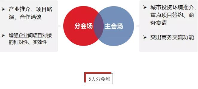 此次城市投資洽談會采取“分會場+主會場”模式舉辦,分會場重點增強企業(yè)間項目對接的針對性、實效性,主會場重點突出商務(wù)交流功能。根據(jù)產(chǎn)業(yè)類別,本次大會開辟了信息技術(shù)及智能制造、醫(yī)療康養(yǎng)、產(chǎn)業(yè)金融、商貿(mào)服務(wù)、招才引智5個分會場。