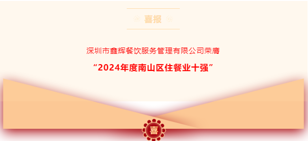 【會(huì)企動(dòng)態(tài)】熱烈祝賀我會(huì)執(zhí)行會(huì)長(zhǎng)單位——鑫輝餐飲再獲殊榮,榮膺“2024年度南山區(qū)住餐業(yè)十強(qiáng)”!
