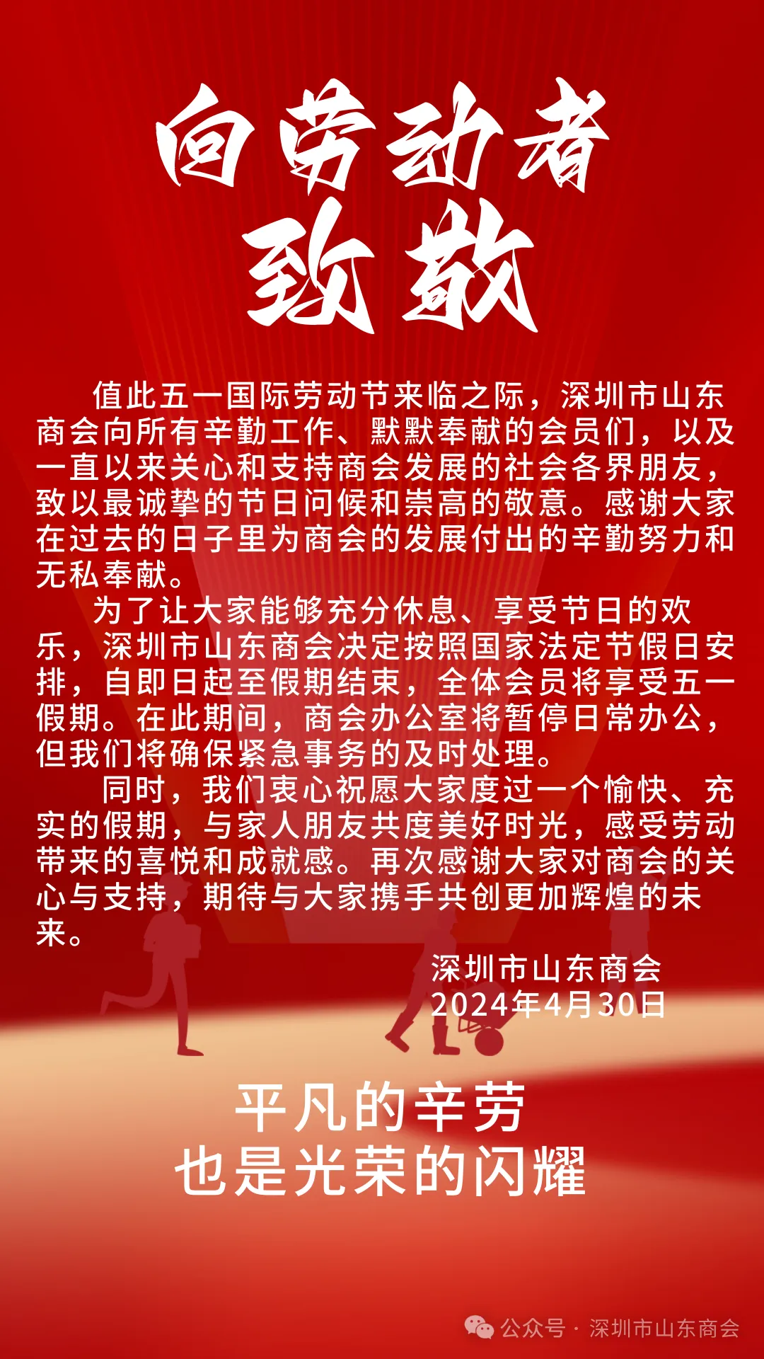 深圳市山東商會(huì)祝大家五一國(guó)際勞動(dòng)節(jié)快樂(lè)