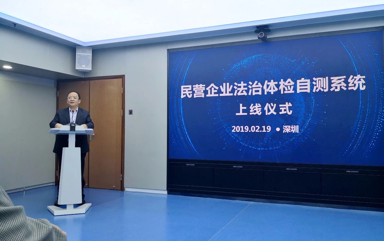 2月19日上午,全國(guó)首家“民營(yíng)企業(yè)法治體檢自測(cè)系統(tǒng)”上線儀式在深圳市司法局舉行。儀式由深圳市司法局副局長(zhǎng)蔣小文主持,深圳市政協(xié)副主席王璞、深圳市委政法委常務(wù)副書記梁增昌出席并啟動(dòng)“民營(yíng)企業(yè)法治體檢自測(cè)系統(tǒng)”上線。深圳市司法局局長(zhǎng)蔣溪林、深圳市司法局巡視員陳鄭興、深圳市前海管理局、深圳市工商業(yè)聯(lián)合會(huì)相關(guān)領(lǐng)導(dǎo)及部分民營(yíng)企業(yè)、商協(xié)會(huì)代表出席上線儀式。我會(huì)會(huì)長(zhǎng)王立新、執(zhí)行秘書長(zhǎng)兼辦公室主任陳振永應(yīng)邀出席。
