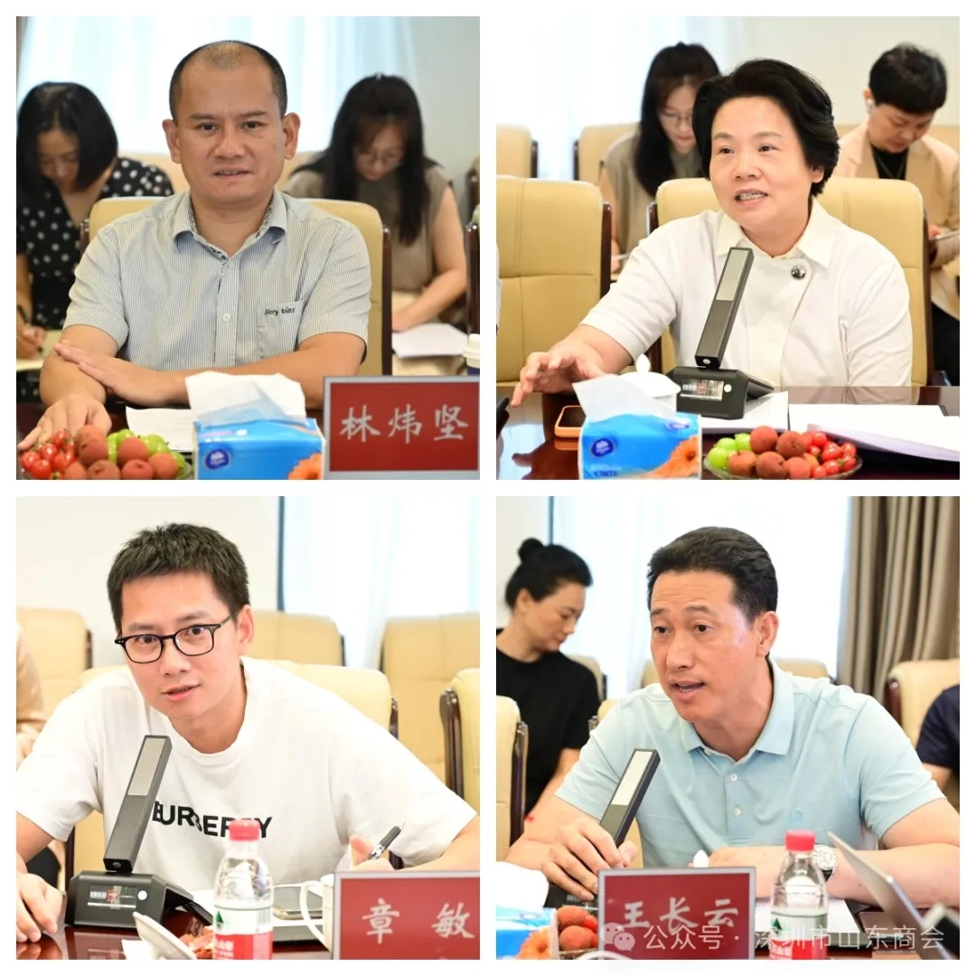 2024年6月1日,我會(huì)會(huì)長(zhǎng)王立新,執(zhí)行會(huì)長(zhǎng)兼秘書(shū)長(zhǎng)梁慶偉,執(zhí)行秘書(shū)長(zhǎng)兼辦公室主任陳振永,商會(huì)掛職干部、濰坊市婦聯(lián)辦公室主任劉曉冰等陪同山東省委原常委、省政協(xié)原副主席、省齊魯文化傳承發(fā)展促進(jìn)會(huì)(以下簡(jiǎn)稱(chēng)文促會(huì))會(huì)長(zhǎng)吳翠云、常務(wù)副會(huì)長(zhǎng)鞠洪侖等一行到訪深圳市福建商會(huì)對(duì)接交流。深圳市福建商會(huì)會(huì)長(zhǎng)施能獅,執(zhí)行會(huì)長(zhǎng)兼秘書(shū)長(zhǎng)林煒堅(jiān),軍旅文化委員會(huì)會(huì)長(zhǎng)梁偉清,執(zhí)行會(huì)長(zhǎng)雷建熙、徐麗萍、章敏,常務(wù)副會(huì)長(zhǎng)王長(zhǎng)云、董龍嘉,名譽(yù)會(huì)長(zhǎng)蔡篤頂、吳振強(qiáng),副會(huì)長(zhǎng)王芳等熱情接待,并圍繞“傳統(tǒng)文化賦能新質(zhì)生產(chǎn)力”開(kāi)展座談交流。山東省人民政府駐廣州辦事處副主任劉風(fēng)俊陪同活動(dòng)并發(fā)言。福建省人民政府駐深圳辦事處二級(jí)調(diào)研員、經(jīng)濟(jì)聯(lián)絡(luò)處處長(zhǎng)盧洪清出席活動(dòng)并發(fā)言。