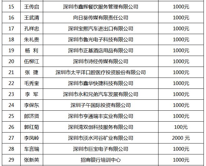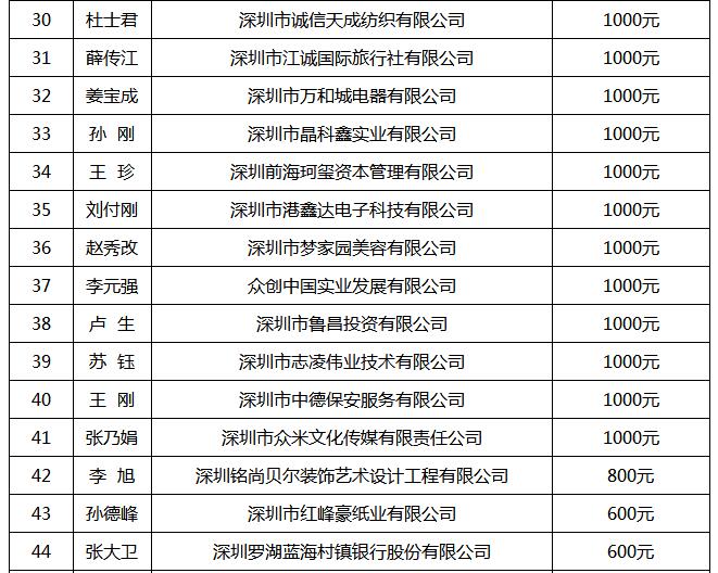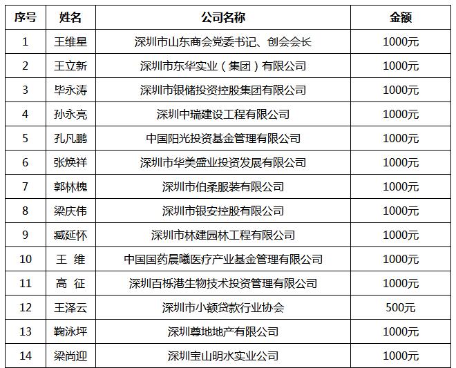 深圳市山東商會(huì)發(fā)起河源連平扶貧助學(xué)企業(yè)家名單