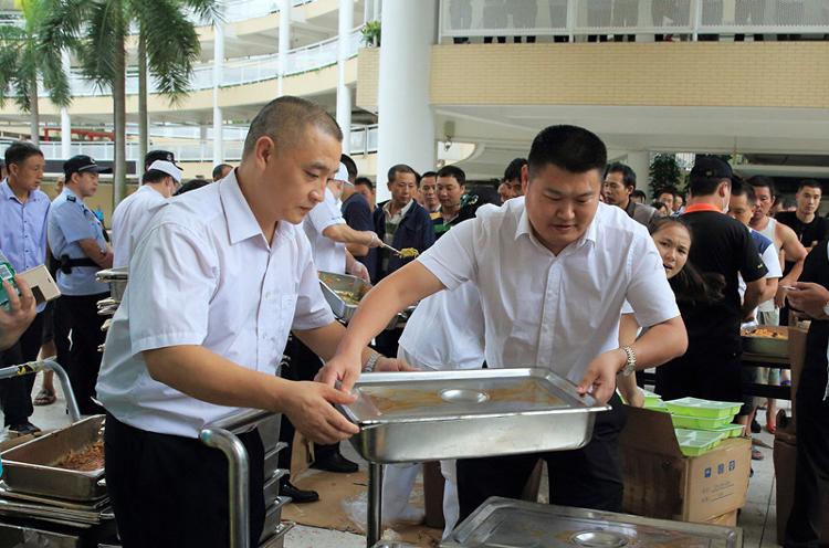 早在2014年和2018年,臺風(fēng)“海馬”和“山竹”殺到深圳,深圳設(shè)立了多個緊急避難點(diǎn),每一個避難點(diǎn)涌來大量人員,一日三餐,迫在眉睫,鑫輝接到通知,連夜組織人力物力,趕制熱騰騰的飯菜,前后解決了4萬多人和6萬多人的吃飯問題……