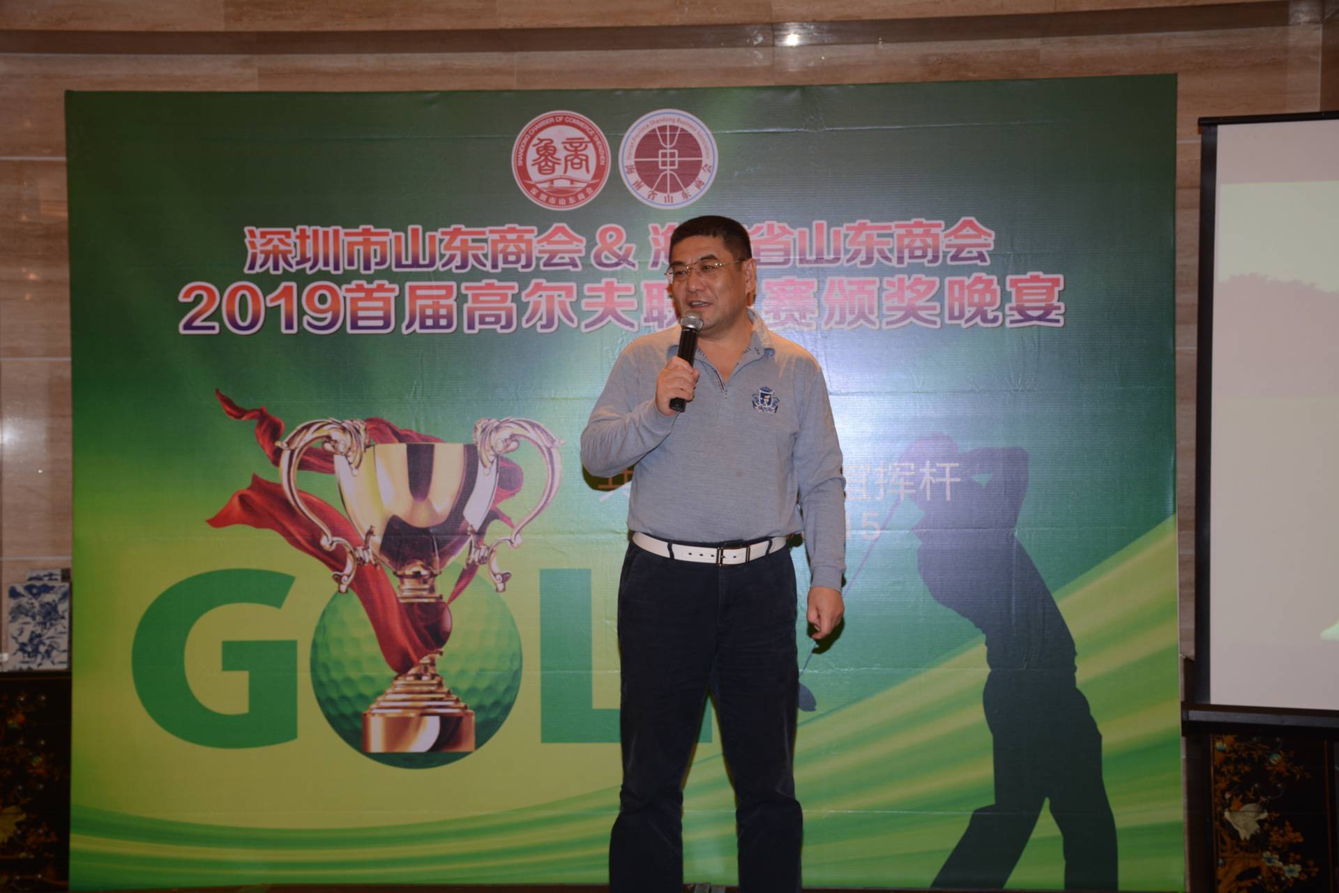 18點(diǎn)30分,聯(lián)誼賽頒獎(jiǎng)晚宴隆重舉行。張煥祥隊(duì)長(zhǎng)在致辭中肯定了兩會(huì)首屆高球聯(lián)誼賽的豐碩成果,他表示,本次聯(lián)誼賽既陶冶了情操,又鞏固了兄弟商會(huì)間的友誼,今后兩會(huì)要常來(lái)常往,以球會(huì)友的模式也要延續(xù)下去,同時(shí)代表球隊(duì)歡迎海南省山東商會(huì)齊魯高爾夫球隊(duì)到深圳與山東老鄉(xiāng)們揮桿敘鄉(xiāng)情。海南省山東商會(huì)會(huì)長(zhǎng)李建國(guó)在講話中表示,本次高球聯(lián)誼賽的成功舉辦,為下一步兩會(huì)建立互訪機(jī)制、資源共享,促進(jìn)商會(huì)間開(kāi)展多領(lǐng)域合作打下了堅(jiān)實(shí)的基礎(chǔ)。海南省山東商會(huì)秘書(shū)長(zhǎng)高正霞在講話中介紹了參賽的海南省山東商會(huì)主要隊(duì)員,并將組織本次聯(lián)誼活動(dòng)的背景和經(jīng)過(guò)做了簡(jiǎn)要介紹。我會(huì)嘉賓國(guó)家海洋局原黨組成員李春先在講話中對(duì)獲獎(jiǎng)隊(duì)員致以祝賀,并宣布自愿擔(dān)任兩家商會(huì)的“駐京辦主任”,服務(wù)全體山東老鄉(xiāng),獲得大家的熱烈掌聲。