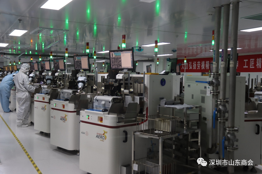 考察團(tuán)首先考察了深圳市山東執(zhí)行會長劉陵剛在嶧城區(qū)投資的漢旗、漢芯半導(dǎo)體產(chǎn)業(yè)園項目。漢旗產(chǎn)業(yè)園項目專注于半導(dǎo)體集成電路的研發(fā)、封裝、測試、銷售等環(huán)節(jié)。目前,漢旗科技擁有專利23項,其中IC設(shè)計發(fā)明專利17項,封裝實用新型專利6項,年可封裝芯片18億只,產(chǎn)業(yè)規(guī)模位列山東省首位。漢芯半導(dǎo)體產(chǎn)業(yè)園項目涵蓋離岸設(shè)計公司,大型封裝測試廠,晶片CP廠,多家半導(dǎo)體設(shè)備制造公司及相關(guān)特種材料加工廠,可在園區(qū)內(nèi)實現(xiàn)半導(dǎo)體封測全產(chǎn)業(yè)鏈運作,并配套有集成電路信賴性實驗室,高端PCB貼片廠、動力電池加工廠等高科技公司。產(chǎn)業(yè)園區(qū)以商招商,已有上下游產(chǎn)業(yè)鏈?zhǔn)嗉移髽I(yè)落戶產(chǎn)業(yè)園區(qū)。目前漢芯漢旗總產(chǎn)值已突破8億元。