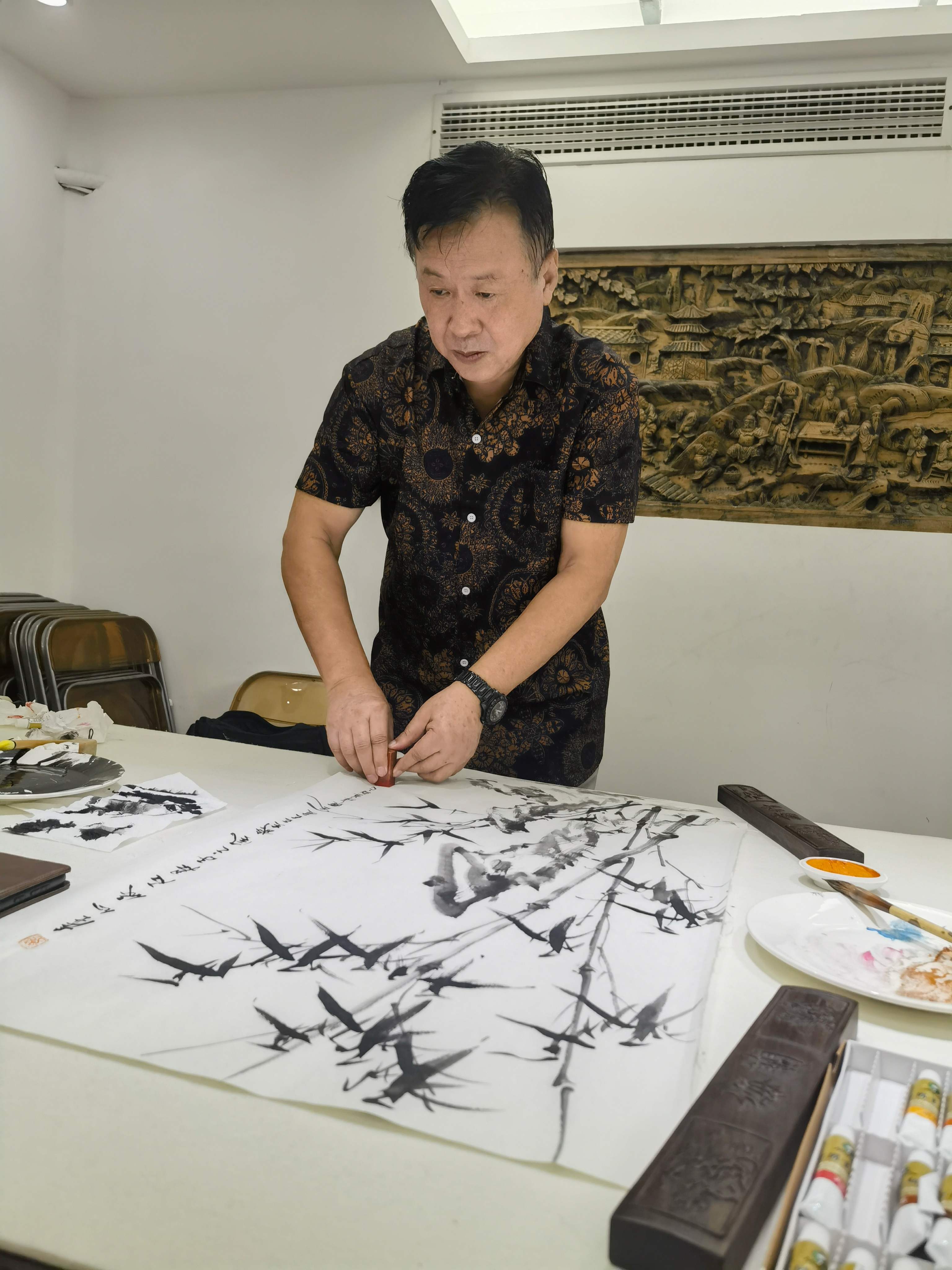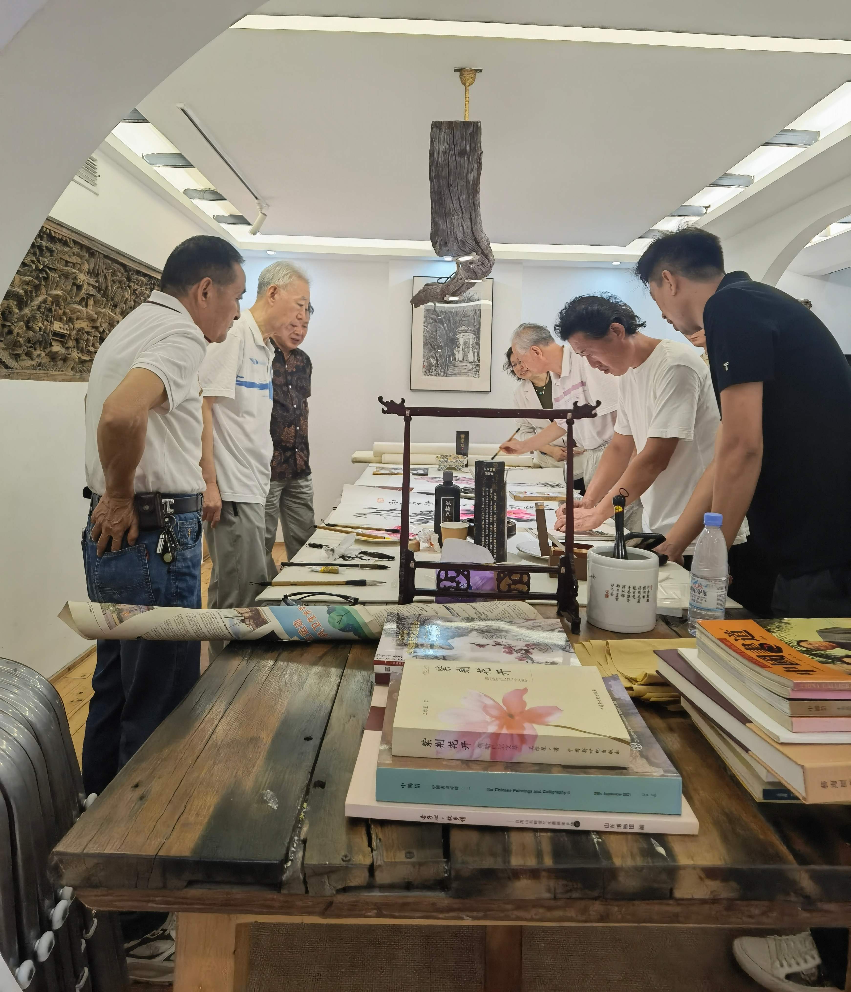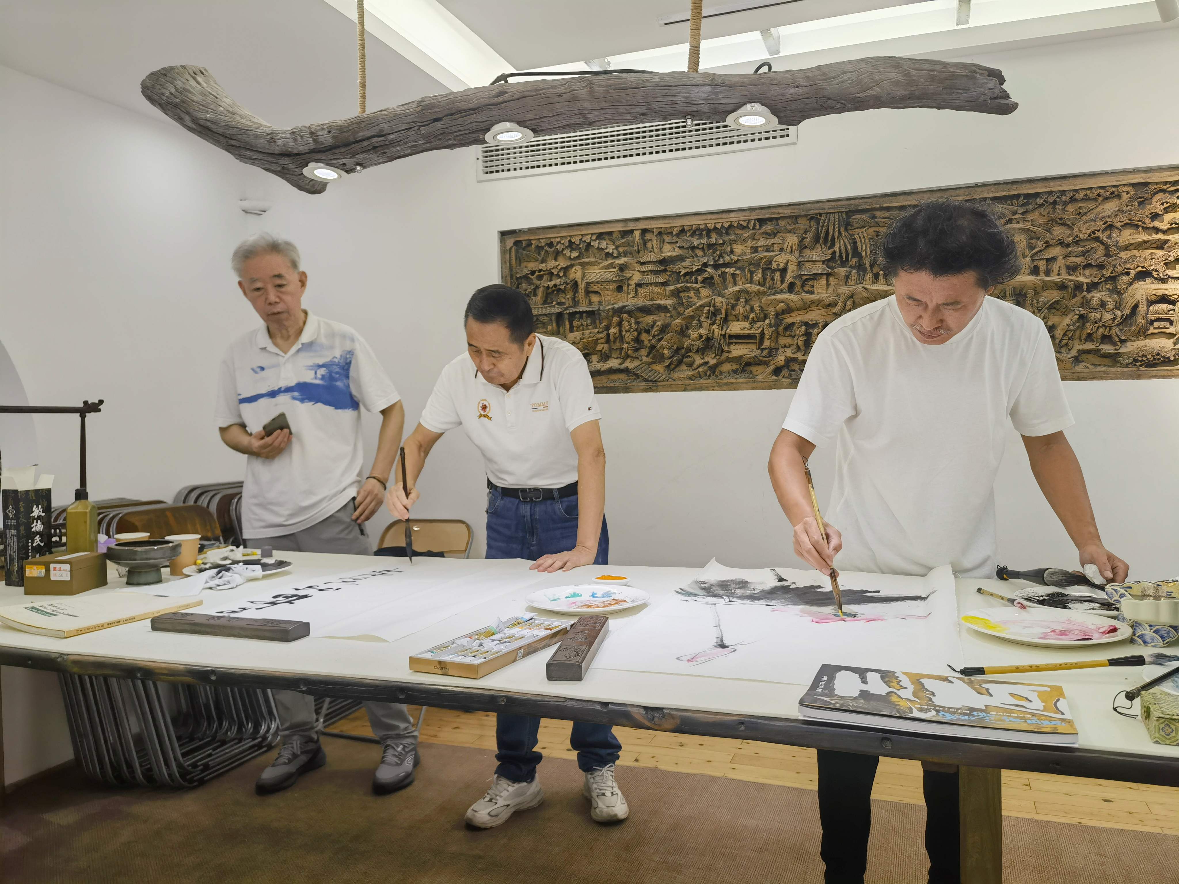 秋意初染鵬城,翰墨香滿(mǎn)藝苑。2025年9月11日,深圳市齊魯書(shū)畫(huà)院多位書(shū)畫(huà)家齊聚荷蘭花卉小鎮(zhèn)“遷想藝院”,開(kāi)展筆會(huì)交流活動(dòng)。藝術(shù)家們現(xiàn)場(chǎng)揮毫潑墨,暢談創(chuàng)作心得,書(shū)寫(xiě)佳句、繪就丹青,以筆墨禮贊盛世華章。