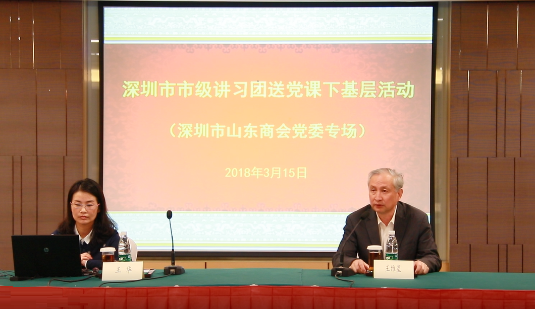 為進一步深入學習貫徹落實黨的十九大精神和習近平總書記在參加十三屆全國人大一次會議廣東團重要講話精神,2018年3月15日下午,深圳市市級講習團送黨課下基層活動(山東商會專場)在山東大廈東華假日酒店三樓春華廳舉行。根據(jù)市社會組織黨委《關于做好講習團送黨課下基層活動有關事項的通知》要求,深圳市山東商會黨委邀請了深圳信息職業(yè)技術學院思政部副教授、法學博士王華同志為大家授課。黨委書記王維星同志主持。